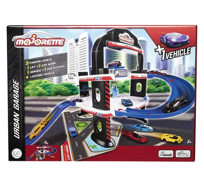Гараж Е 7004 / В 6003 — 4 поверхи, 6 машинок, автоматичний підіймач, світло, звук, озвучка англійською, в коробці