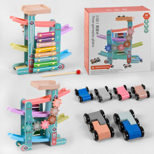 Парковка на 4 поверхи та 6 машинок + ксилофон (C 44894) дерево-пластик, в коробці