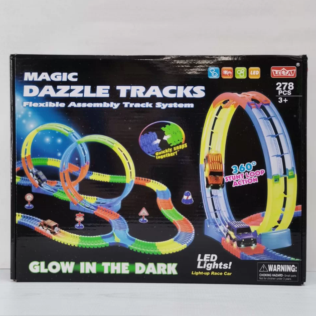 Світний гнучкий трек для дітей, перегонова траса з двома петлями та неоновими рейками