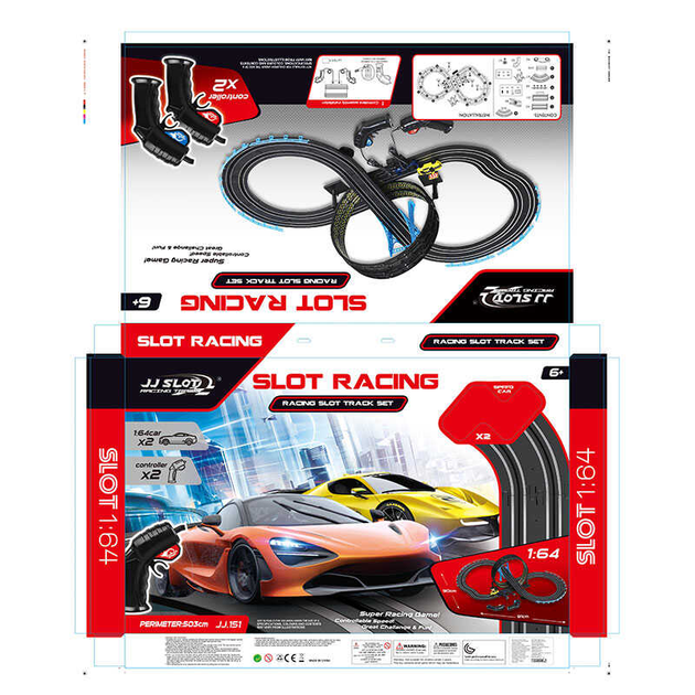 Трек jj 151-1 (12) 2 машинки, 2 джойстики на батарейках, розмір треку 91х90 см, масштаб 1:64, в коробці