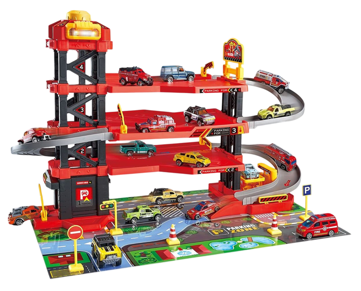 Паркінг для машинок із механічним підіймачем підсвічуванням і звуком Пожежна станція 64 елементи