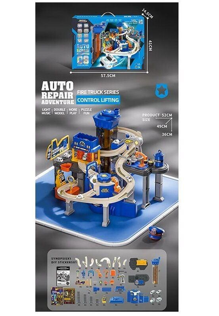 Трек JP 588-12 (6) мелодія, підсвічування, 8 машинок, автоматичний підіймач, автомийка, в коробці