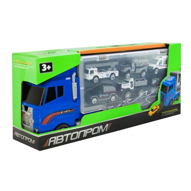 Набір з машинками АвтоПром Трейлер 6 моделей синій 34.5х9.4х14.5см (PS006-3)