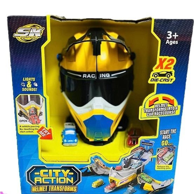 Дитячий ігровий набір Гараж-трансформер шолом-паркінг із трасою, світло, звук, машинки
