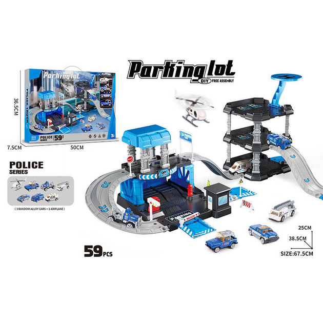 Трек 666-10 3 металопластикові машинки, гелікоптер, 3 рівні, муляжі оточення, наліпки, в коробці