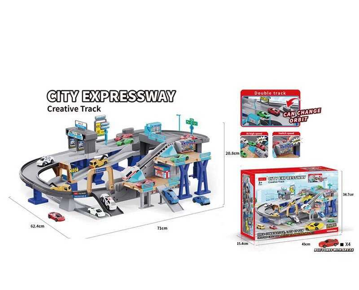 Трек 681 a (8) 2 рівні, автоматичний підіймач, 4 машинки, рухливі елементи, в коробці
