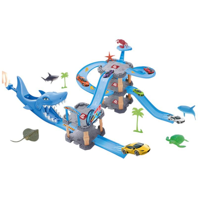 Трек 8864. 3 рівні, 6 металопластикових машинок, механічний запускач, фігурки тварин