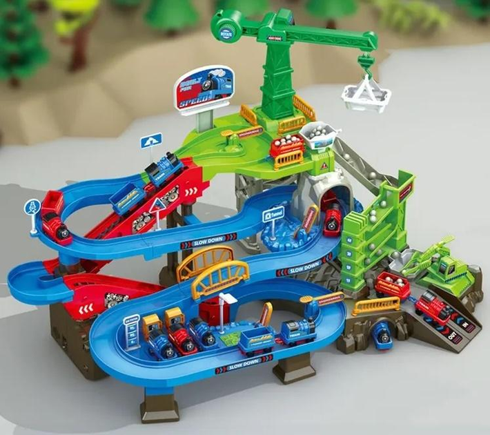 Дитячий ігровий автотрек WBX що розвиває для хлопчика з паровозиками автоматичним підйомником та музикою