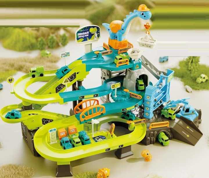Дитячий ігровий автотрек WBX, що розвиває для хлопчиків з автоматичним підйомником машинками та музикою.