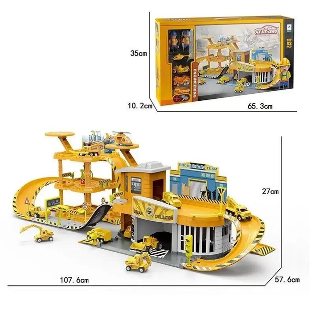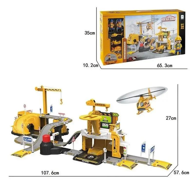 Дитяча ігрова будівельна парковка трек 93 деталі, запускач для машинок, машинки, вертоліт 660 A-198