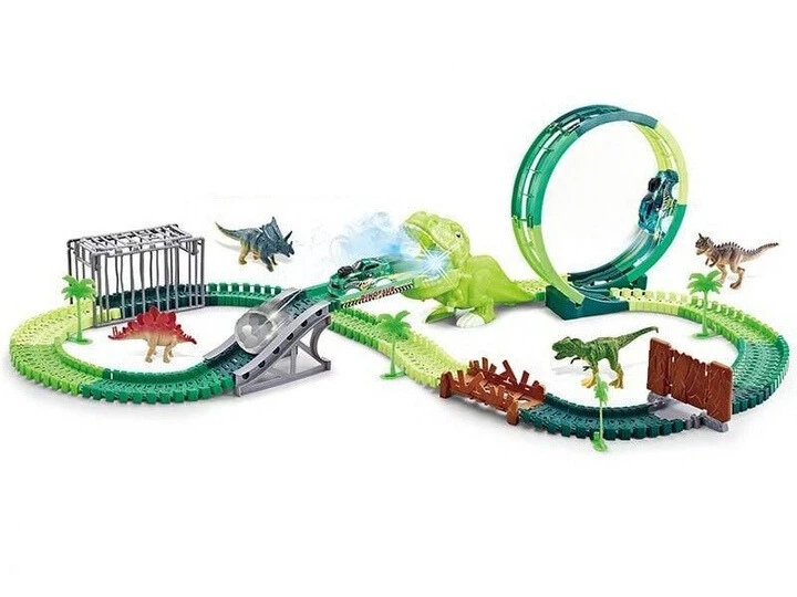 Автотрек 351 Світ динозаврів з машинкою і мертвою петлею гнучкий з фігурками динозаврів зі світлом і звуком