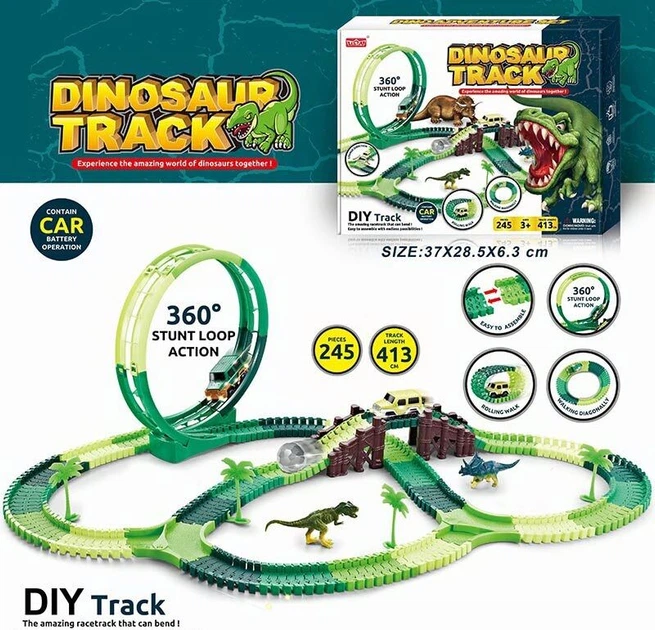 Гнучкий трек дино майданчик (352) світло, звук, 178 елементів, довжина 488 см, аксесуари