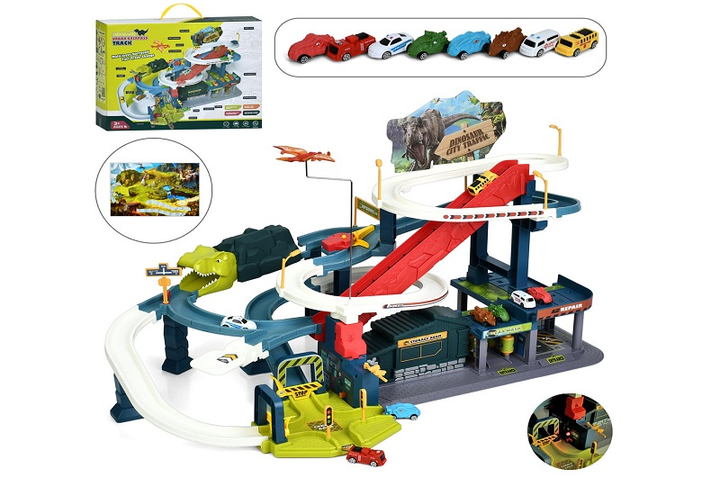 Гараж 6603A парк динозаврів, 3 поверхи, звук, світло, машина 8шт 4,5см (4шт спецтехніка)