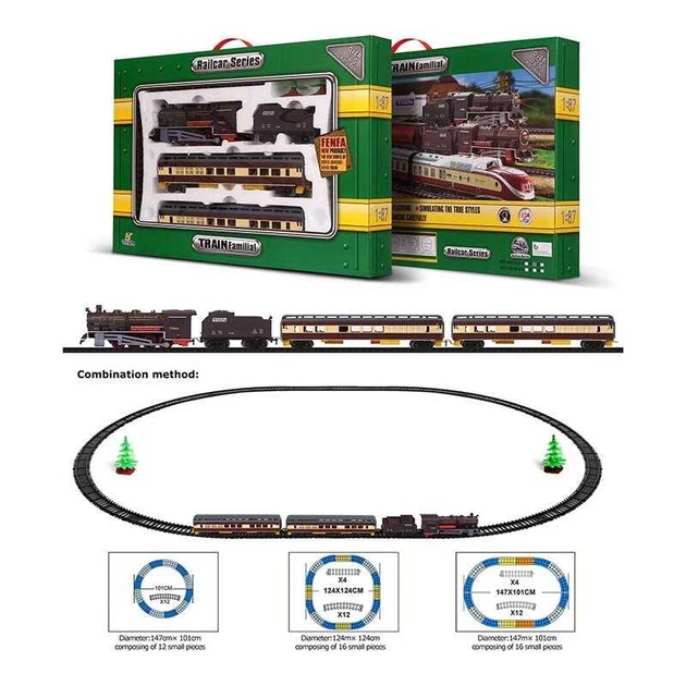 Дитяча залізниця 602 A звук, підсвічування, парогенератор, автоматичний рух, на батарейках, локомотив та 4 вагони