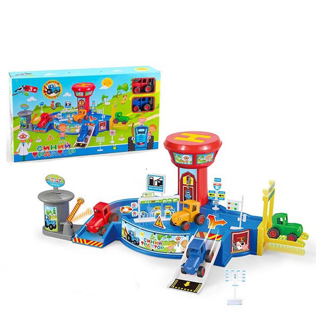 Ігровий набір машинки Дитячий гараж і парковка Синій трактор зі заправкою на трактор 2 шт, дорожні знаки
