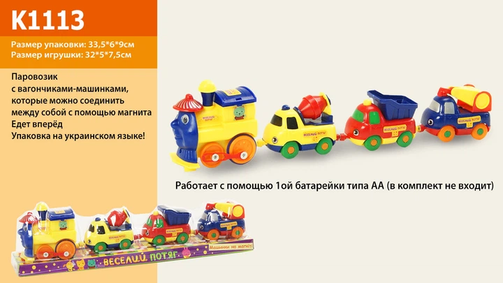 Паровозик батар. 3 машинки, блістер 34*6*9см 18008E