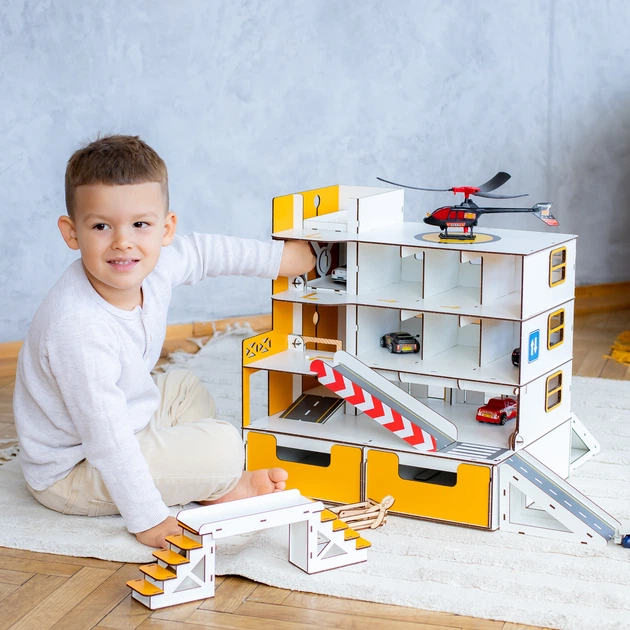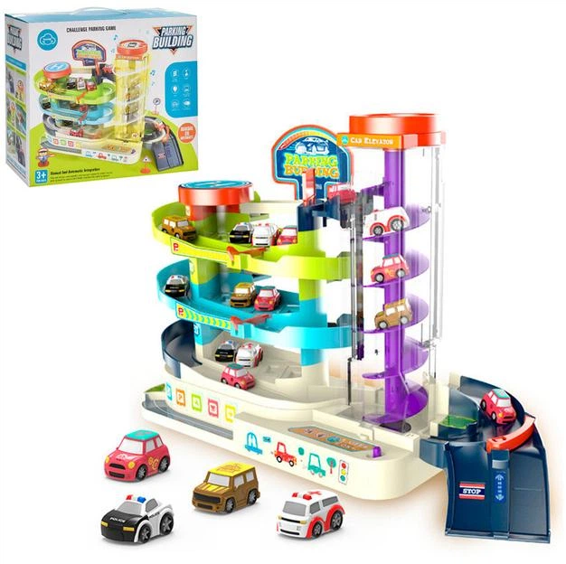 Дитячий музичний гараж для машинок T103-77A з автоматичним підйомником 3 поверхи, 4 машинки