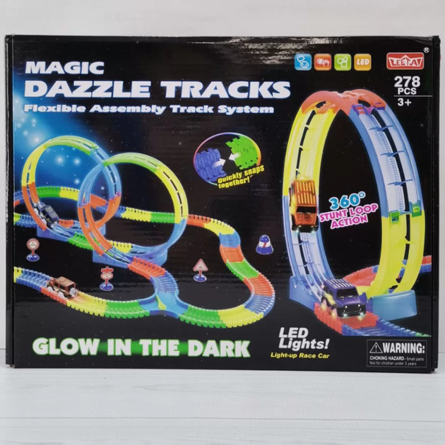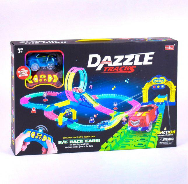 Трек Magic Tracks Dazzle 124 177 деталей машинка на батарейках підсвічування неоновий трек