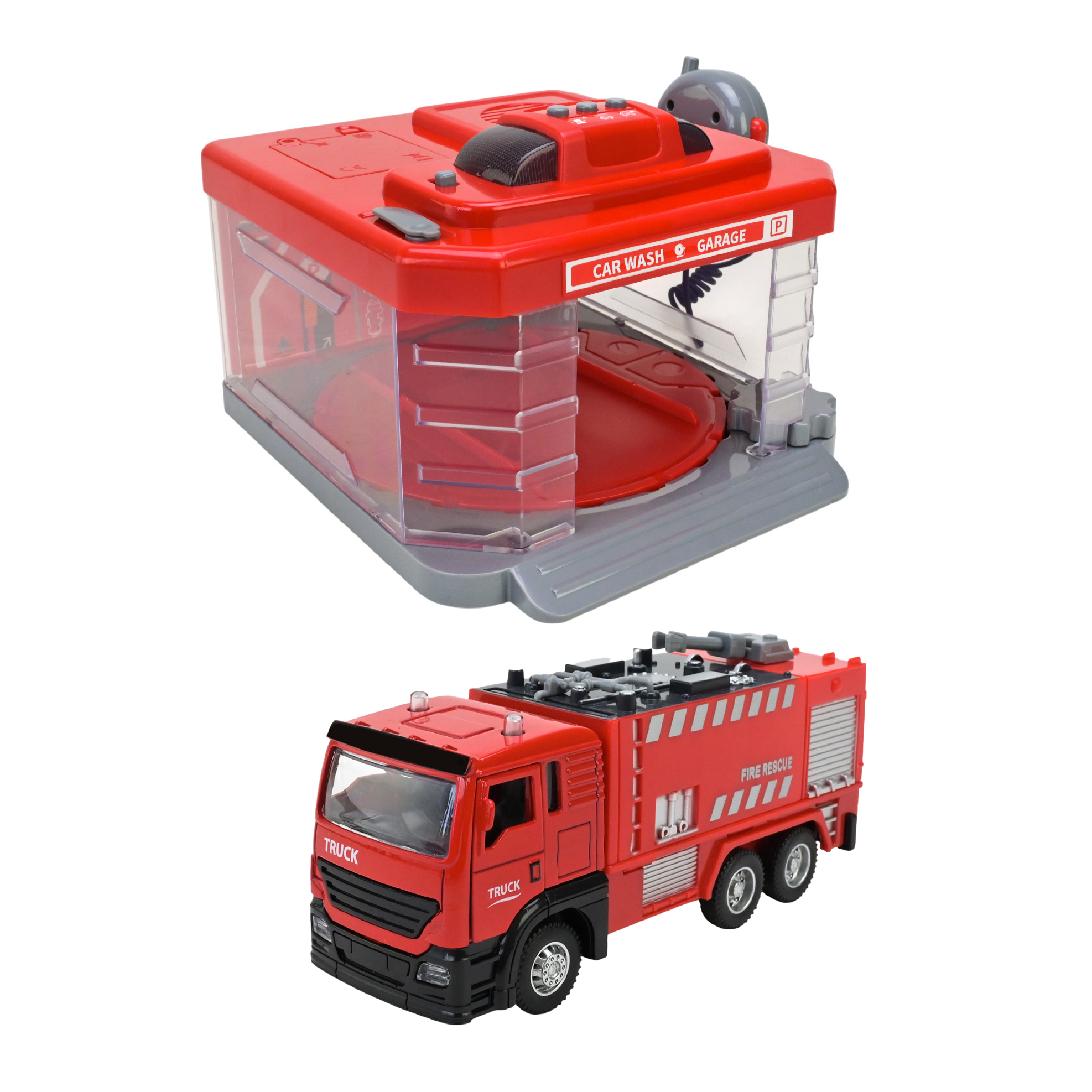 Ігровий набір Країна Іграшок Станція автомийки з пожежною машиною, яка дарує емоції з першого запуску! Цей набір подарує дітям яскраві емоції та години захоплюючої гри, поєднуючи в собі реалістичні функції та оригінальний дизайн. Цей ігровий набір поєднує в собі одразу два світи — рятувальні місії пожежників та догляд за технікою на автомийці. Ефект пари та підсвічування