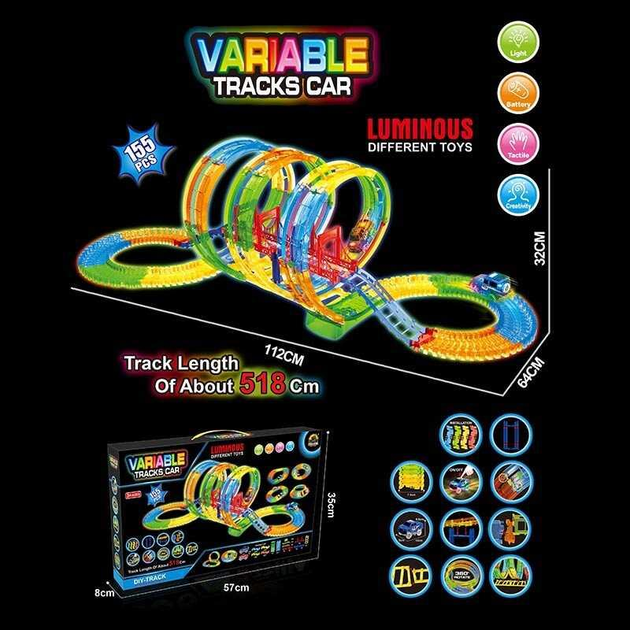 Трек автотрек іграшковий 155 елементів, підсвічування, 2 машинки, автоматичний рух, довжина 518 см GD 8003 A