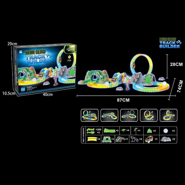 Трек автотрек іграшковий 200 деталей, машинка на батарейках, підсвічування, неоновий 777-134