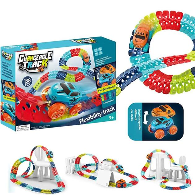 Конструктор автомобільна дорога трек 138 деталей та машинка на батарейці гнучка гоночна траса Cheangeble Track HandyHeat G52