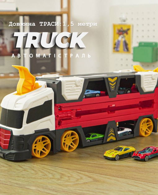 Автомобільний трек-автомагістрал E7015B з автовозом і 2 машинками, 1,5 м