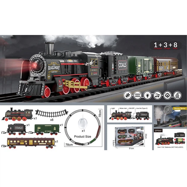 Залізниця: локомотив, 3 вагони, пара/дим, музика, світло, батарейки, коробка (699-25A)
