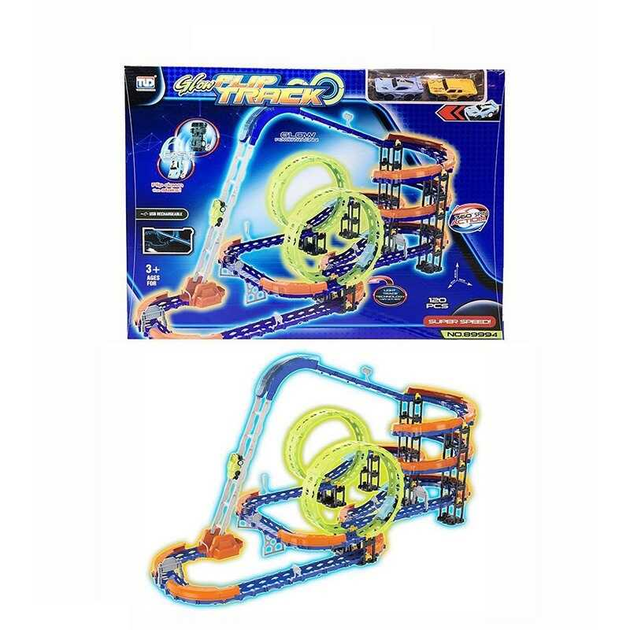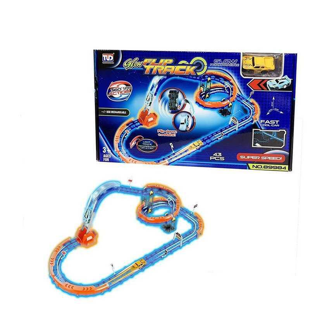 Трек 89984 42 елементи, машинка із вбудованим аккумулятором, підсвічування, світитися у темряві, трюки, муляжі оточення, в к