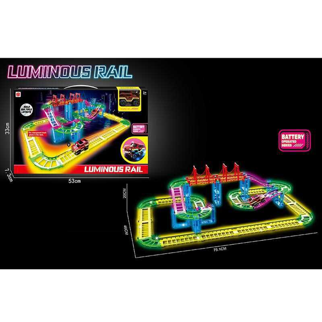 Трек 888-132 74 елементи, люмінесцентний, машинка на батарейці, підсвічування