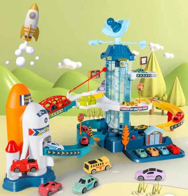 Трек Космічна станція, підсвічування, весела пісенька, автоматичний підіймач, 6 машинок, важелі та кнопки tuosiqi T915A