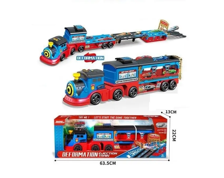 Потяг з розкладним треком, звуки, підсвічування, 2 металопластикові машинки, 2 механічні запускачі JP588-75