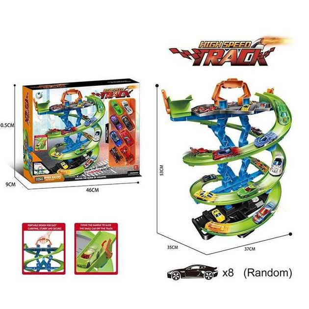 Трек 011-97 з 8 металопластиковими машинками, в коробці – Ігровий набір для гонок