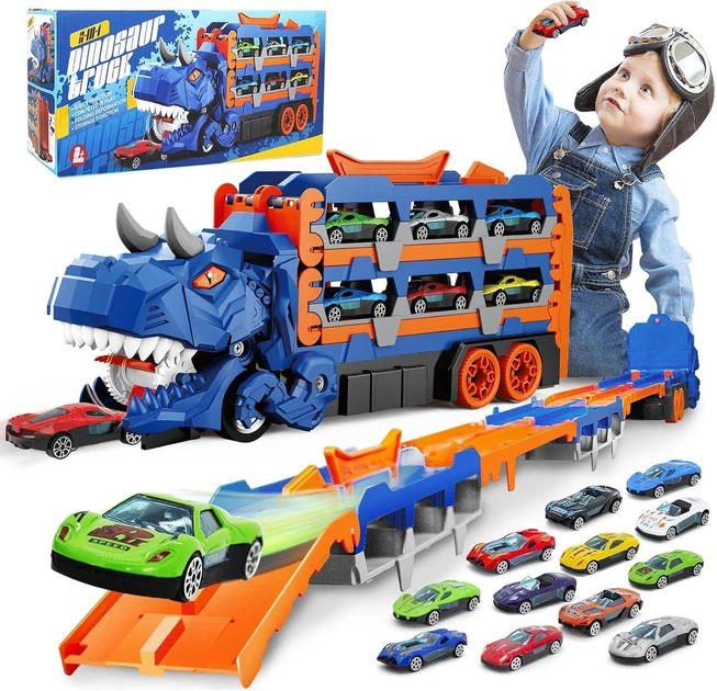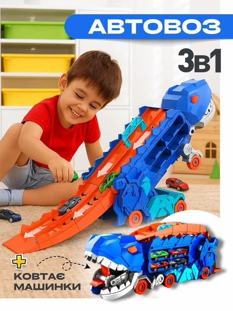 Дитячий автотрек розвивальна інтерактивна іграшка з машинками ігровий набір динозавр машина T-Rex 3 в 1 трансформер автовоз