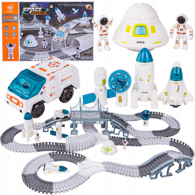Дитячий автотрек Space Explore на 332 деталей містить гнучкий трек і космічний апарат з аксесуарами