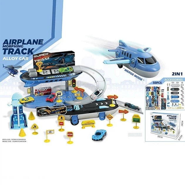 Трек 666-15 6 металопластикових машинок, гелікоптер, 3 рівні, муляжі оточення, наліпки, в коробці