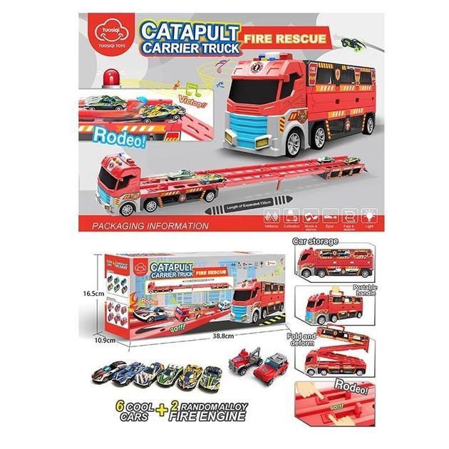 Трек "Пожежна машина" з піснями, звуками та підсвічуванням, 4 металеві машинки, в коробці (672)