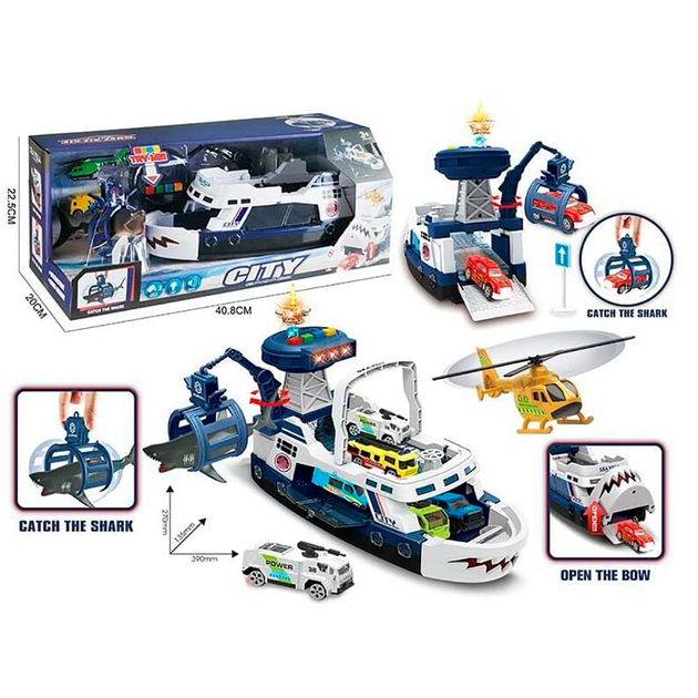 Корабль рятівник з набором транспорту (660 S-02) катер, акула, транспорт, світло, звук