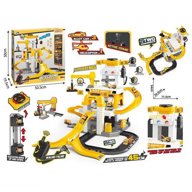 Парковка p механічним ліфтом звуком та підсвічуванням (660 S-23) 53 елементи, 3 металопластикові машинки, гелікоптер, мікроф