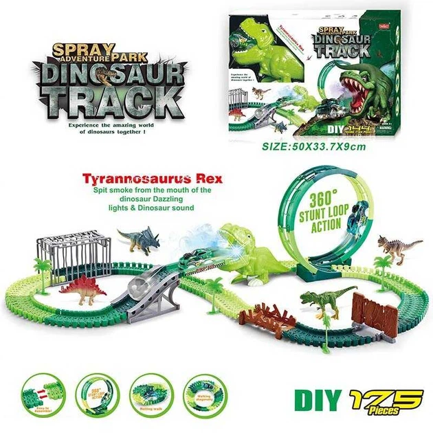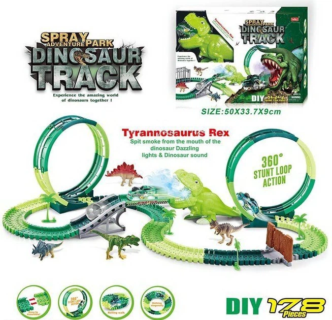 Трек 352 світло, звук, діно площадка, 178 елементів, длина треку 488 см, аксесуари, в коробці