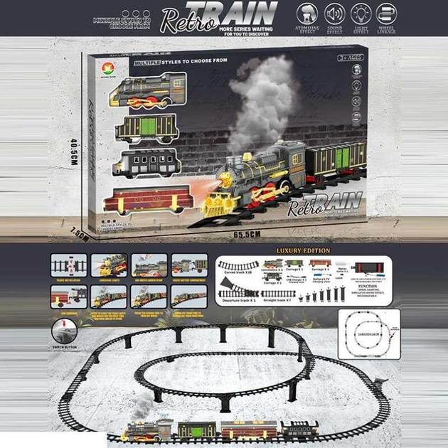 Залізниця 699-6 A світлові та звукові ефекти, акумулятор 3.7 V, USB кабель, парогенерація, автоматичний принцип роботи