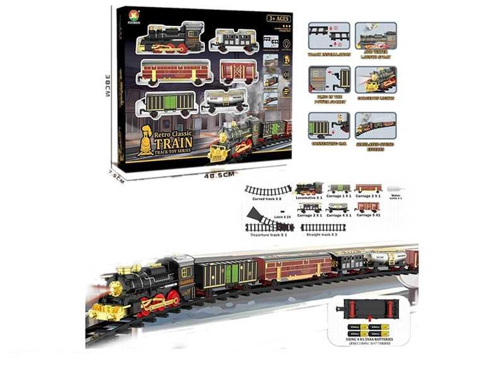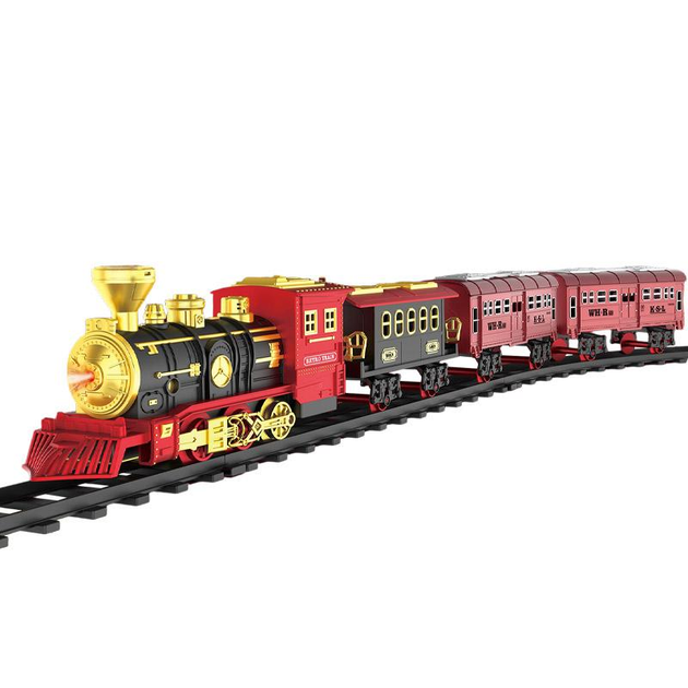 Залізниця 699-4 a (12) 16 елементів, локомотив, 3 вагони, акумулятор 3.7 V, підсвічування, парогенератор, звуки, в коробці