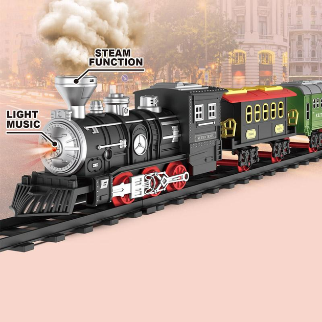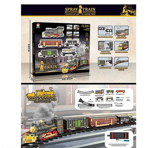 Залізниця 699-31 A світлові та звукові ефекти, акумулятор 3.7 V, USB кабель, парогенерація, автоматичний принцип роботи