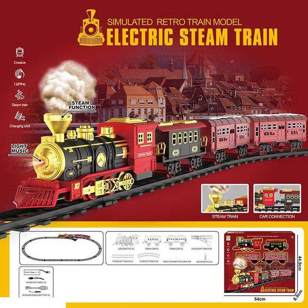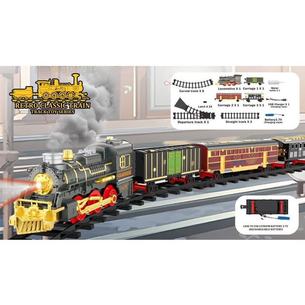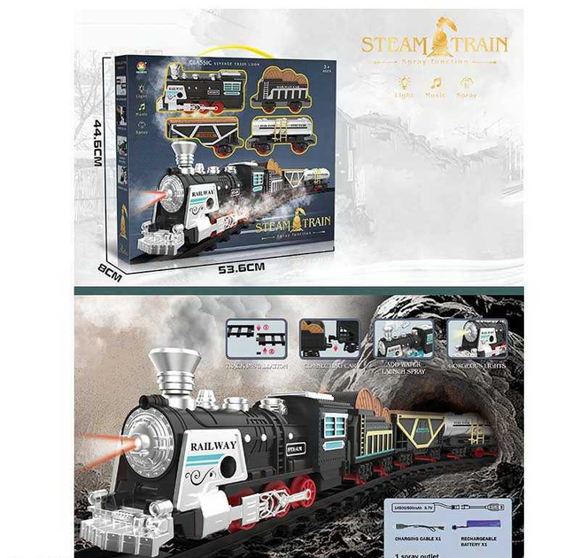 Залізниця 699-26 a (10) світлові та звукові ефекти, акумулятор 3.7 V, USB кабель, парогенерація, автоматичний принцип роботи
