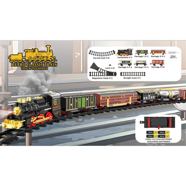 Залізниця 699-28 A світлові та звукові ефекти, акумулятор 3.7 V, USB кабель, парогенерація, автоматичний принцип роботи
