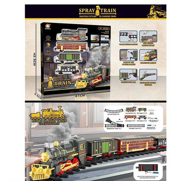 Залізниця 699-28 a (12) світлові та звукові ефекти, акумулятор 3.7 V, USB кабель, парогенерація, автоматичний принцип роботи