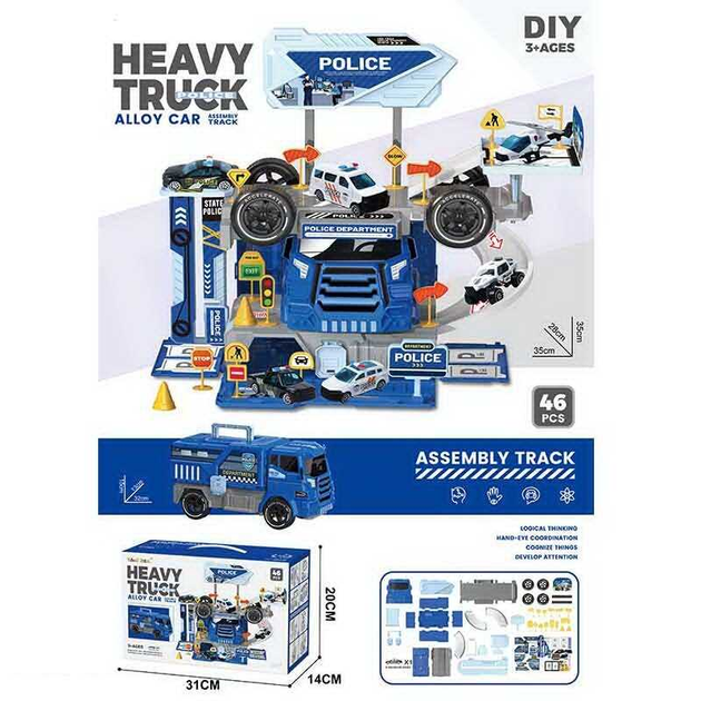 Трек 6664 "Поліція", 2в1, вантажівка+трек, 46 елементів, металопластикова машинка, пластикові колеса, в коробці