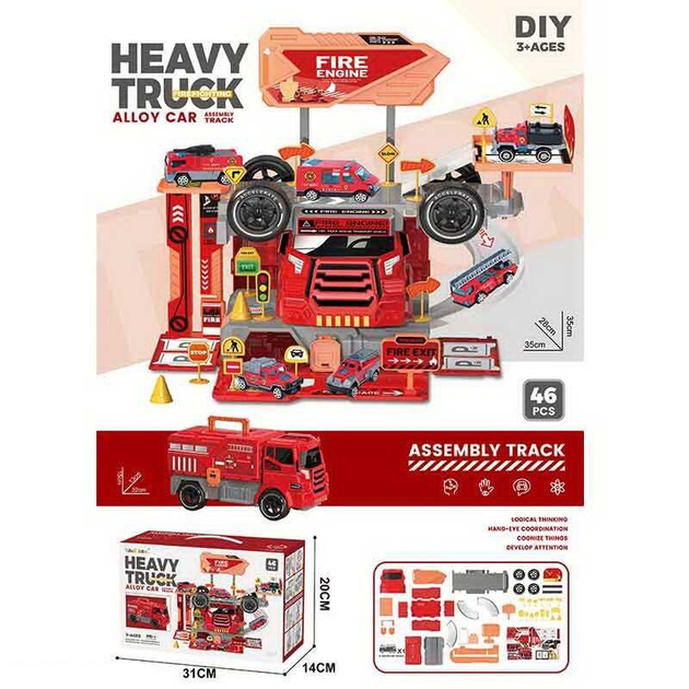 Трек 6662 "Пожежна станція", 2в1, вантажівка+трек, 46 елементів, металопластикова машинка, пластикові колеса, в коробці