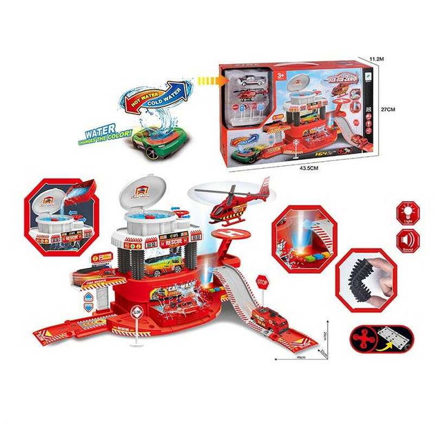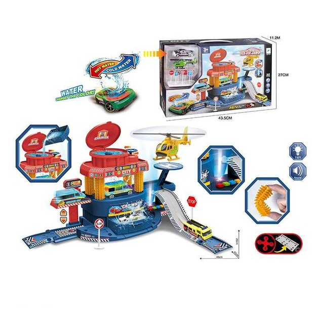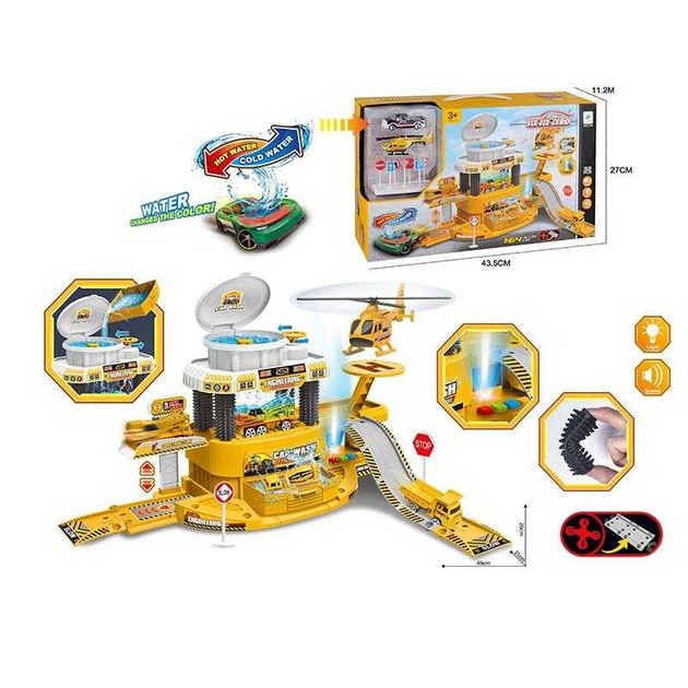 Автомийка 660 a-319, звуки, світло, машинка змінює колір від тепла, механічний підйомник, вертоліт, в коробці (6983283063457