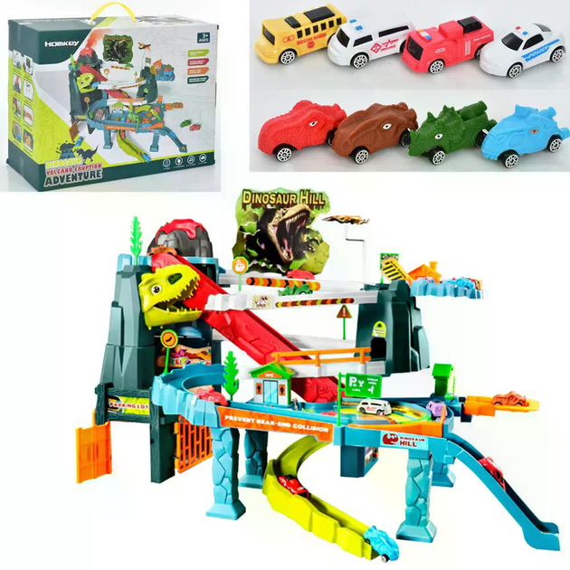 Трек 5505A машинка 8 шт., дорожні знаки, пара, динозавр ,музика, світло, на батарейках, в коробці, 42,5-33-17 см